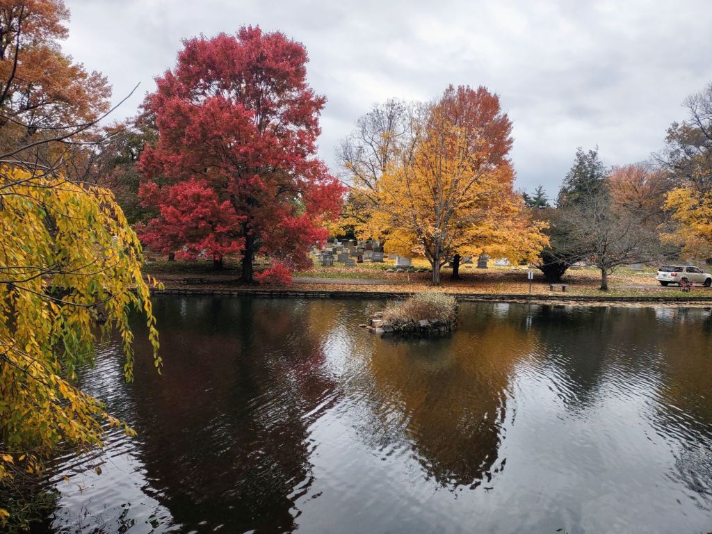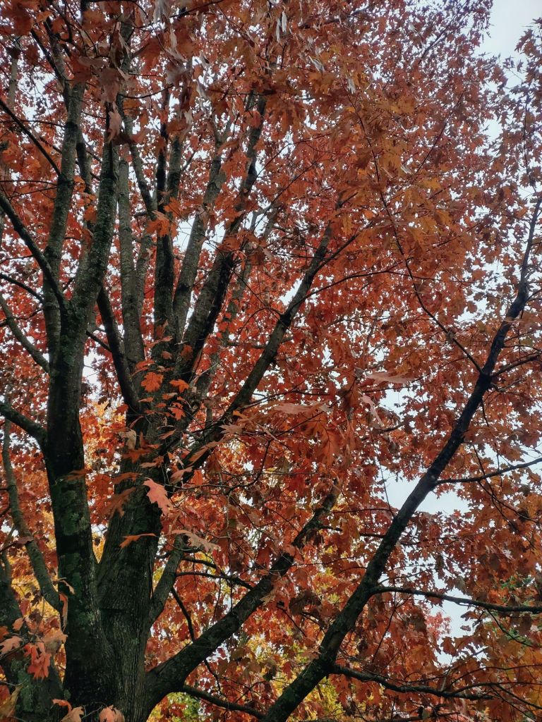 It’s cold and the sky is gray and white. If I had taken these last weekend or even yesterday, it would have been sunny with a blue sky. I wanted to capture the Fall colors and I think I did that even though half the leaves have already fallen.