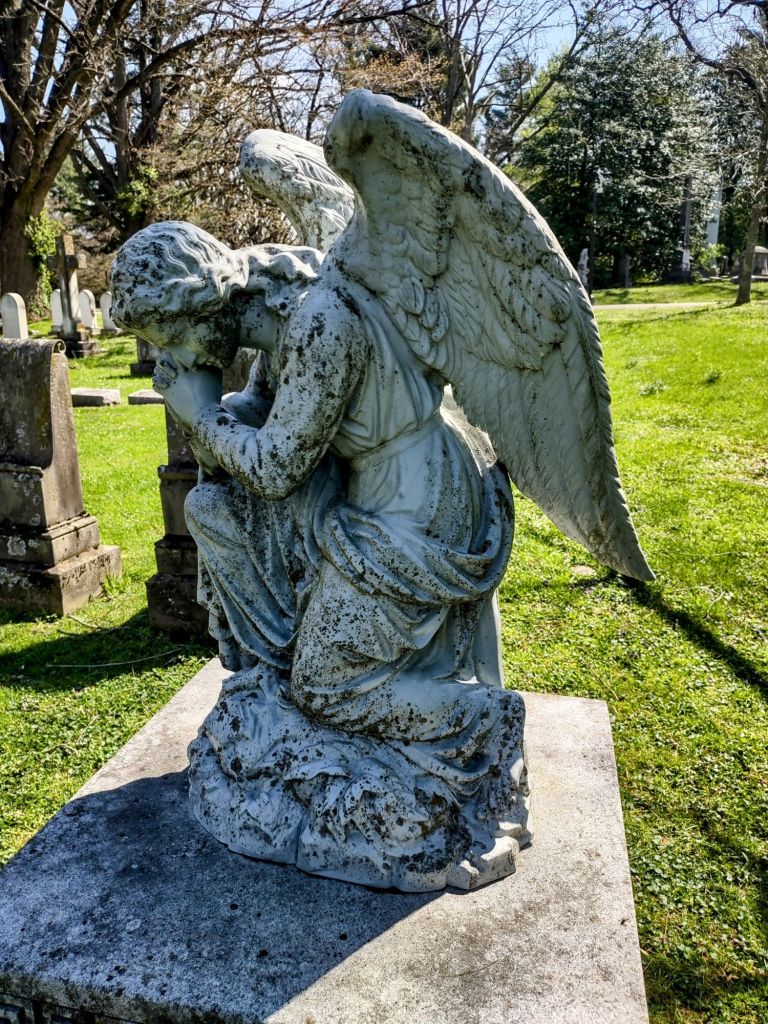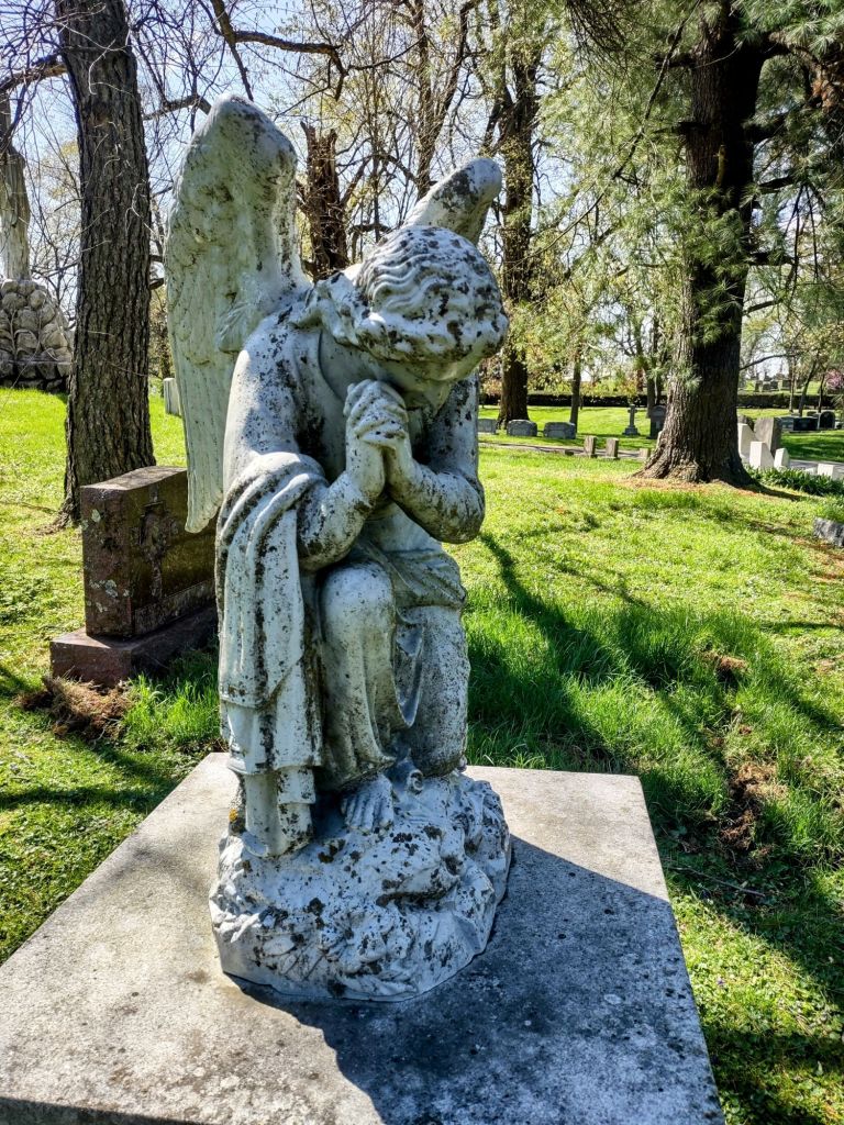 I took photos of some of the statues, predominantly angels, saints and crosses. I also went to the flower garden where the tulips were blooming. They haven’t mulched yet but I know the staff will have it all decked out next weekend for Easter. The Lexington Cemetery is truly a beautiful, peaceful place!