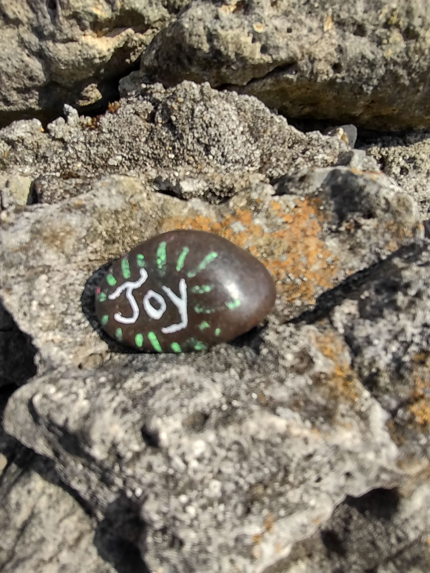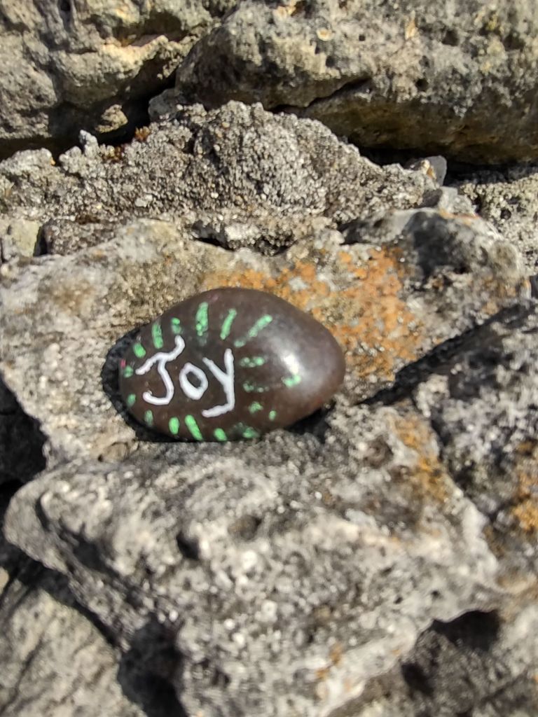 In the midst of grief and heartache, I’ve been choosing joy this year. I brought with me a rock with the word “joy” painted on it and I decided to leave it at the cross. The backside of the cross was filled with trinkets and flowers that others had left there.